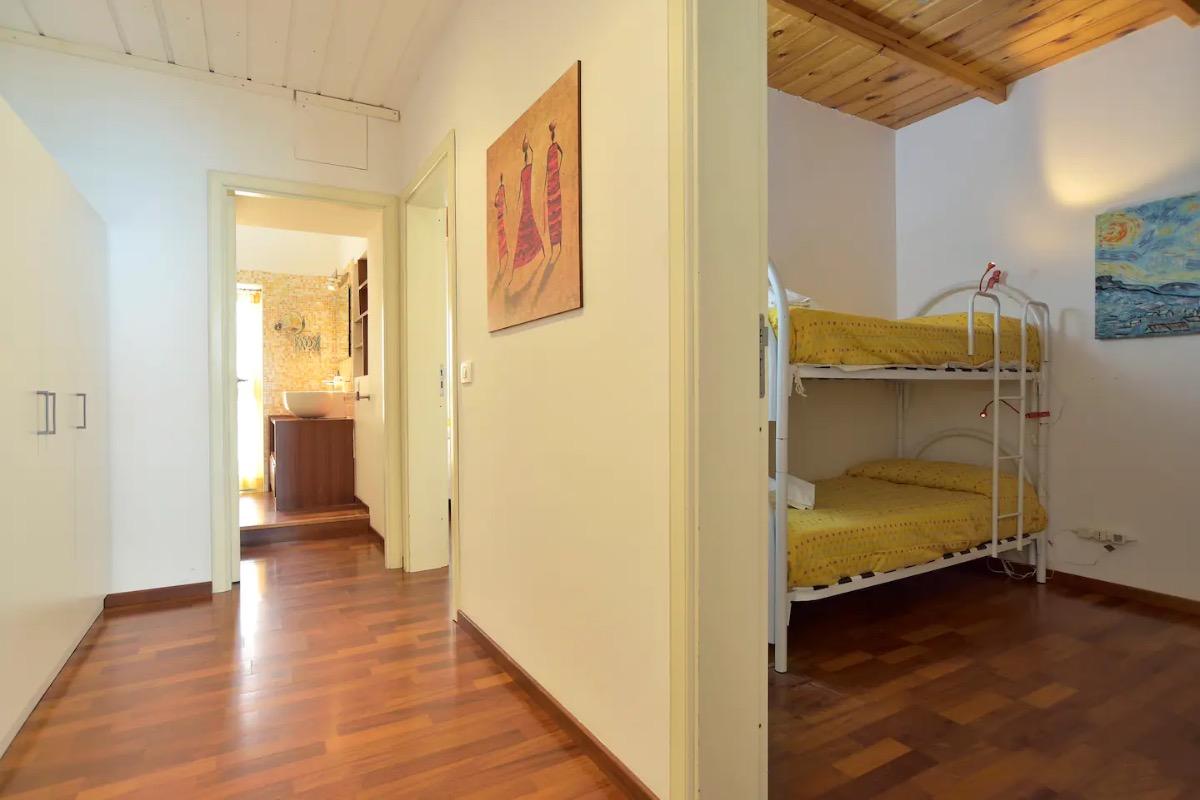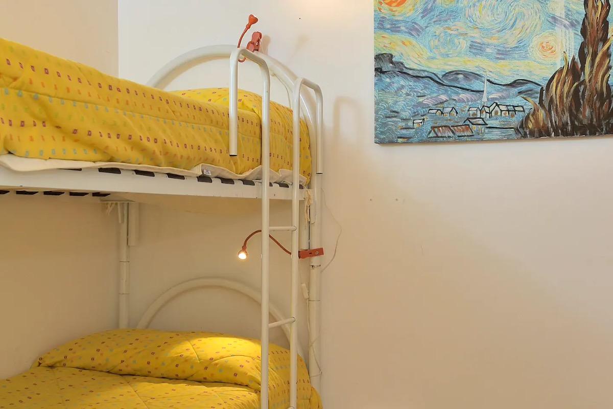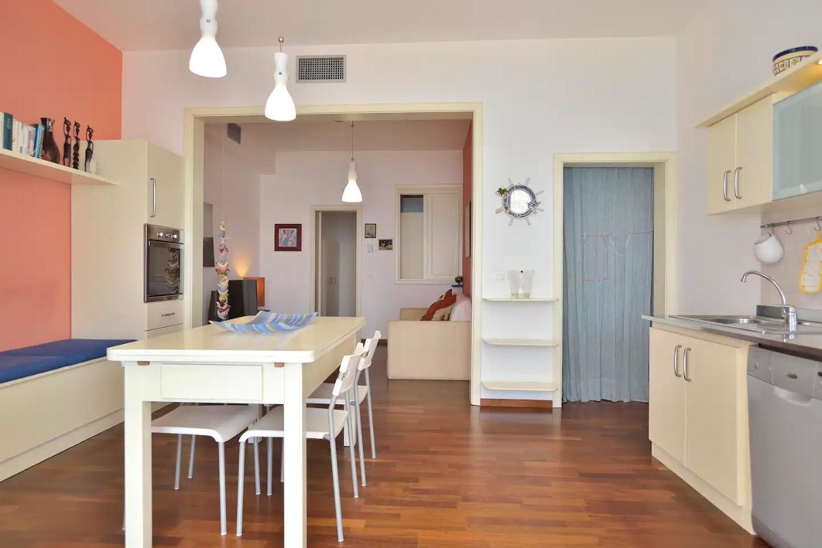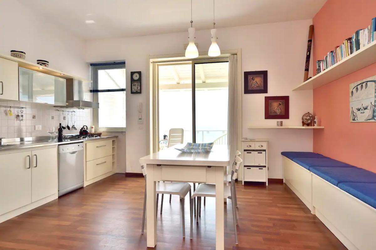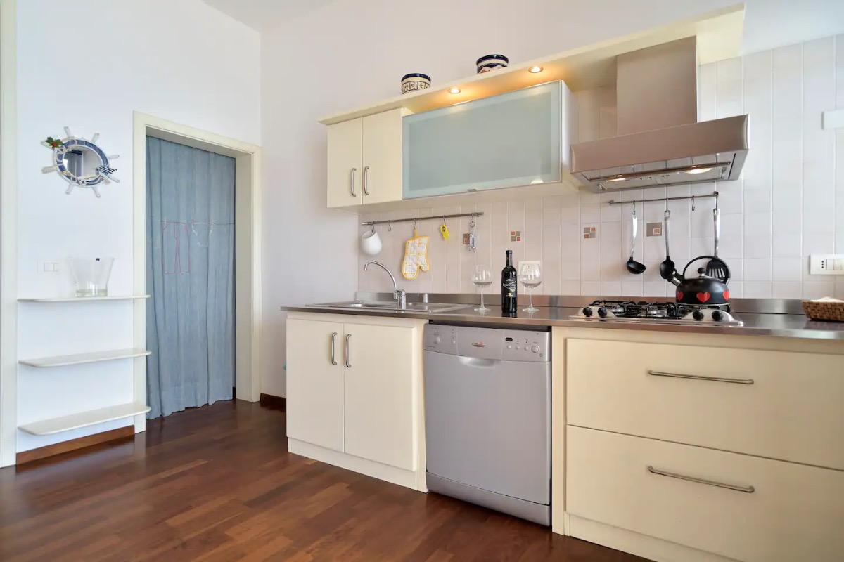 La nostra casa è composta da una veranda attrezzata con sedie e tavolino con vista diretta sul mare, un ampio soggiorno con cucina completamente attrezzata (forno, forno a microonde, lavastoviglie), lavanderia con lavatrice, divano che all'occorrenza si trasforma in un letto matrimoniale e TV. La zona notte comprende una deliziosa camera da letto e una stanza con un letto a castello.